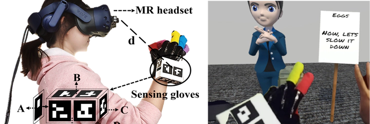 This paper presents a holistic system to scale up the teaching and learning of vocabulary words of American Sign Language (ASL). The system leverages the most recent mixed-reality technology to allow the user to perceive her own hands in an immersive learning environment with first- and third-person views for motion demonstration and practice. Precise motion sensing is used to record and evaluate motion, providing real-time feedback tailored to the specific learner. As part of this evaluation, learner motions are matched to features derived from the Hamburg Notation System (HNS) developed by sign-language linguists. We develop a prototype to evaluate the efficacy of mixed-reality-based interactive motion teaching. Results with 60 participants show a statistically significant improvement in learning ASL signs when using our system, in comparison to traditional desktop-based, non-interactive learning. We expect this approach to ultimately allow teaching and guided practice of thousands of signs.