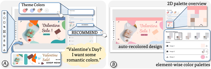 Selecting a proper color palette is critical in crafting a high-quality graphic design to gain visibility and communicate ideas effectively. To facilitate this process, we propose De-Stijl, an intelligent and interactive color authoring tool to assist novice designers in crafting harmonic color palettes, achieving quick design iterations, and fulfilling design constraints. Through De-Stijl, we contribute a novel 2D color palette concept that allows users to intuitively perceive color designs in context with their proportions and proximities. Further, De-Stijl implements a holistic color authoring system that supports 2D palette extraction, theme-aware and spatial-sensitive color recommendation, and automatic graphical elements (re)colorization. We evaluated De-Stijl through an in-lab user study by comparing the system with existing industry standard tools, followed by in-depth user interviews. Quantitative and qualitative results demonstrate that De-Stijl is effective in assisting novice design practitioners to quickly colorize graphic designs and easily deliver several alternatives.